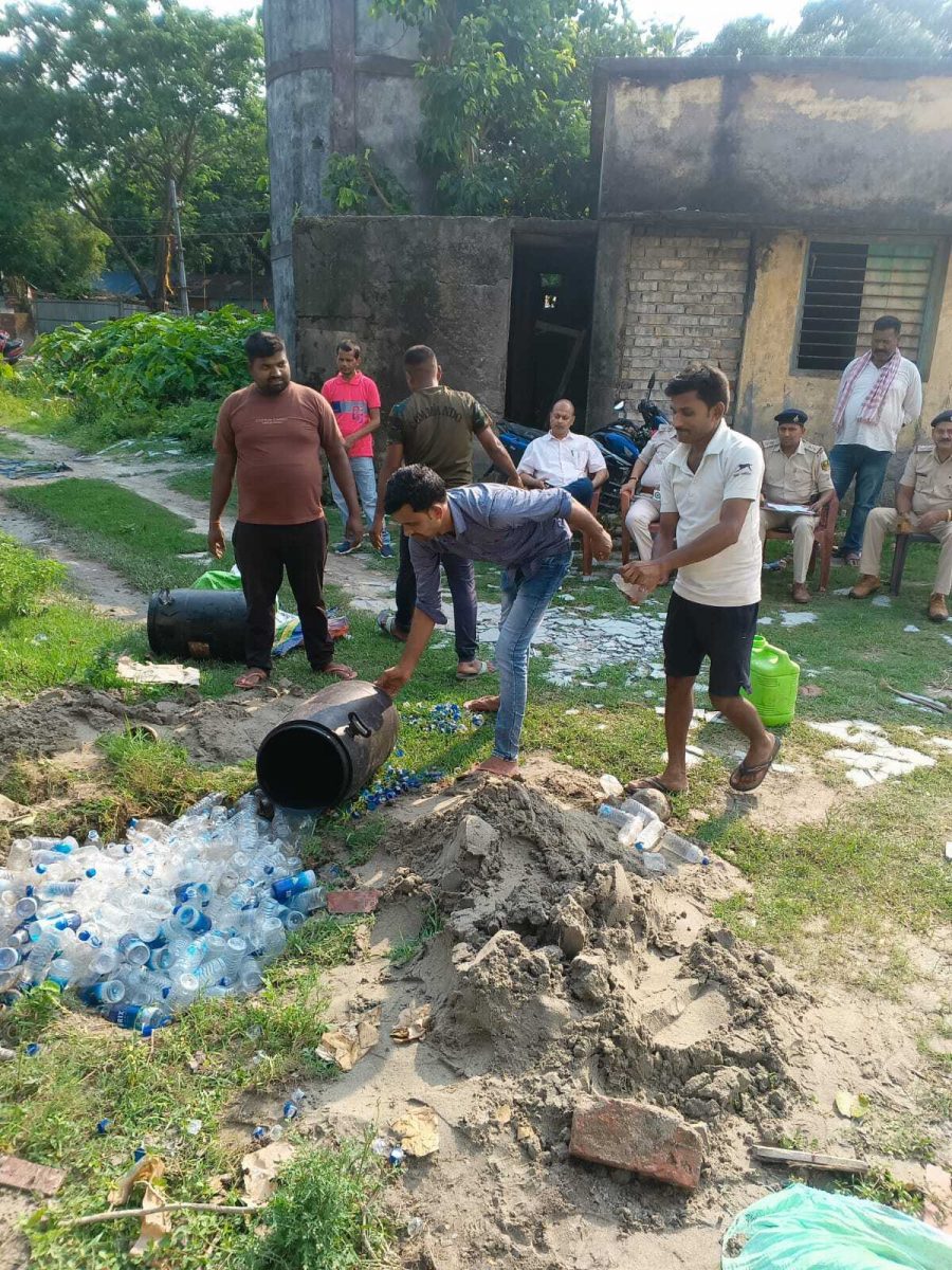 वीरपुर. भीमनगर थाना क्षेत्र अंतर्गत विभिन्न 11 मामलों में जब्त किए गए कुल 442.8 लीटर शराब को गुरुवार को थाना परिसर में नष्ट किया गया. मजिस्ट्रेट सीओ बसंतपुर की गैर मौजूदगी में बसंतपुर बीडीओ सुजीत कुमार मिश्र मौजूद रहे. वहीं उत्पाद विभाग उत्पाद अवर निरीक्षक भीमनगर चेक पोस्ट के प्रभारी की मौजूदगी में सभी शराब 442.8 लीटर शराब को नष्ट किया गया. जानकारी देते हुए भीमनगर थानाध्यक्ष दीपक कुमार ने बताया कि समय समय पर विभागीय निर्देश के आलोक में कांड में जब्त शराब को नष्ट किया जाता है. इसी क्रम में आज पूर्व के 11 मामलों में जब्त 442.8 लीटर नेपाली देसी शराब को नष्ट पदाधिकारियों की मौजूदगी में की गई.