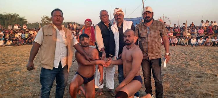 – पुरानी भपटियाही में कार्तिक पूर्णिमा मेला में दंगल प्रतियोगिता का हुआ आयोजन – पहलवानों ने अपने दांव-पेंच से लोगों का खूब किया मनोरंजन सरायगढ़. पुरानी भपटियाही में 22 नवंबर तक चलने वाले कार्तिक पूर्णिमा मेला में सोमवार से कुश्ती प्रतियोगिता का आयोजन किया जा रहा है. मंगलवार को प्रतियोगिता में पहलवानों ने अपने दांव-पेंच से लोगों का खूब मनोरंजन किया. दूसरे दिन प्रतियोगिता का शुभारंभ मुखिया विजय कुमार यादव, पूर्व मुखिया सुनीता देवी, नवीन अरगरिया, कृष्णदेव यादव, लक्ष्मी यादव, विजेंद्र मुखिया ने पहलवानों से हाथ मिलाकर किया. प्रतियोगिता में बक्सर, मधुबनी, दिल्ली, बनारस, राजस्थान, कानपुर, नेपाल सहित विभिन्न जगहों के पहलवान ने भाग लिया. दूसरे दिन नेपाल के राहुल थापा और फुलपरास के भीम पहलवान के बीच रोमांचक मुकाबला हुआ. इसमें राहुल थापा ने भीम पहलवान को पटकनी दी. वहीं गाजीपुर के संघर्ष पहलवान ने दिल्ली के सोमवीर पहलवान को पराजित किया. हरिद्वार के आजाद पहलवान ने कानपुर के अमन पहलवान, बक्सर के बाबर पहलवान ने राजस्थान के राणा पहलवान, नेपाल के बसंत थापा पहलवान ने देहरादून के देहरादून पहलवान, छपरा के निर्दोष पहलवान ने पंजाब के असर पहलवान, बाबर पहलवान ने राजस्थान के राजू पहलवान को पराजित किया. वहीं गाजीपुर के शैलेंद्र पहलवान ने दिल्ली के प्रदीप पहलवान को पटकनी दी. आयोजन कमेटी के सदस्यों ने बताया कि देश के नामी पहलवान जावेद गनी का पहलवानी प्रतियोगिता 19 नवंबर को आयोजित किया जाएगा. आयोजन समिति के सदस्य सह भपटियाही पंचायत के मुखिया विजय कुमार यादव, प्रखंड प्रमुख विजय कुमार यादव, सरपंच विजय मंगल मंगरदैता, नवीन अड़गरिया, वार्ड सदस्य संजय मेहता, राजेश कुसियैत ने बताया कि 19 नवंबर को स्थानीय कलाकारों को मौका दिया जाएगा. 17 से लेकर 21 नवंबर तक देश के विभिन्न राज्यों के पहलवानों द्वारा कुश्ती प्रतियोगिता का आयोजन किया जाएगा. इसमें में प्रथम, द्वितीय और तृतीय स्थान पाने वाले पहलवानों को पुरस्कृत किया जाएगा. 22 नवंबर को भोजपुरी गायिका अंतरा सिंह प्रियंका अपनी टीम के साथ कार्यक्रम करेगी. वहीं कार्तिक पूर्णिमा मेला पर सोमवार की रात भोजपुरी डांसर माही मनीषा, उषा यादव और नेहा सिंह यादव का कार्यक्रम का आयोजन किया गया. इसका उद्घाटन प्रखंड प्रमुख विजय कुमार यादव, मुखिया विजय कुमार यादव, जिप सदस्य गौतम कुमार, सुभाष कुमार यादव आदि ने किया.
