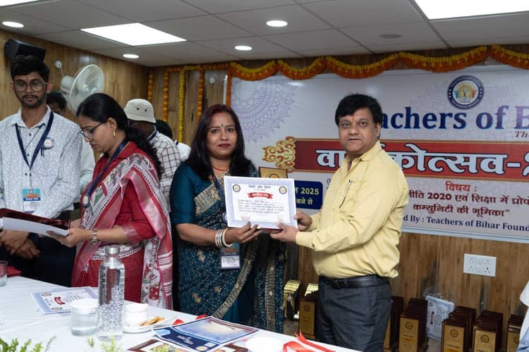 सुपौल टीचर्स ऑफ बिहार के वार्षिकोत्सव में उत्क्रमित उच्च विद्यालय कटहरा छातापुर की शिक्षिका स्मिता ठाकुर, जीवछपुर मध्य विद्यालय के प्रधानाध्यापक प्रमोद रंजन एवं राष्ट्रपति पुरस्कार प्राप्त शिक्षक सौरभ सुमन को सम्मानित किया गया. सम्मान पाने वाली शिक्षिका स्मिता ठाकुर ने कहा कि एक शिक्षक की नौकरी अन्य नौकरी की तरह नहीं होती, इसमें प्रत्येक दिन प्रत्येक कक्षा में पंहुचने से पहले एक शिक्षक प्रत्येक दिन प्रतियोगिता परीक्षा में बैठने की तैयारी करता है. उनके छात्रों के सीखने के स्तर से एक शिक्षक का रिजल्ट घोषित होता है. इस कथन को अपने नवाचारों के माध्यम से संदर्भित करती हुई शिक्षिका को पटना में सम्पन्न हुए टीचर्स ऑफ बिहार के वार्षिकोत्सव में सम्मानित किया गया. इससे पहले भी शिक्षिका को सिर्फ जिला स्तर पर ही नहीं बल्कि राज्य और राष्ट्रीय स्तर पर भी कई सरकारी और गैर सरकारी संस्थाओं के द्वारा उनके नवाचारों हेतु पुरस्कृत किया जा चुका है. जिसका सारा श्रेय वह अपने विद्यार्थियों एवं टीचर्स ऑफ बिहार को देती है. रविवार को एएन सिन्हा इंस्टिट्यूट सभागार में आयोजित समारोह में शिक्षा विभाग के एसीएस एस. सिद्धार्थ, एससीआरटी के निदेशक सज्जन आर, पूर्व निदेशक डॉ मोइन, डाइट की निदेशक रश्मि प्रभा, राज्य परियोजना पदाधिकारी उदय कुमार उज्ज्वल, पटना डीइओ संजय कुमार, सुपौल डीपीओ महताब रहमानी एवं टीचर्स ऑफ बिहार के सीईओ शिव कुमार आदि मौजूद थे. ज्ञातव्य हो कि सुपौल जिले से ये पुरस्कार तीन शिक्षको को दिया गया जिसमें शामिल रहे।