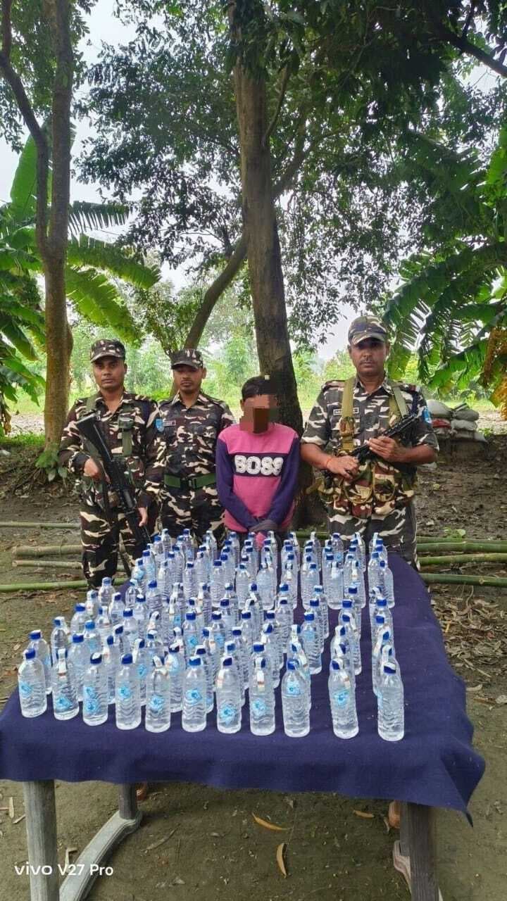 वीरपुर. एसएसबी 45वीं बटालियन सीमा चौकी रिफ्यूजी कॉलोनी के जवानों ने सोमवार को 121 बोतल नेपाली शराब के साथ एक तस्कर को गिरफ्तार किया. कमांडेंट गौरव सिंह ने बताया कि गुप्त सूचना मिली की सीमा पिलर संख्या 199/6 के रास्ते नेपाल से प्रतिबंधित सामान की तस्करी होने वाली है. सूचना मिलते ही एक टीम का गठन कर जवानों को चिन्हित स्थान पर भेजा गया. वहां पहुंचने पर जवानों ने देखा कि एक व्यक्ति बोरा में सामान लिए नेपाल से भारतीय सीमा की ओर आ रहा है. भारतीय सीमा में प्रवेश करते ही जवानों ने उसे पकड़ कर तलाशी ली तो बोरा से 121 बोतल नेपाली शराब बरामद हुआ. इसके बाद जवानों ने मौके से ही तस्कर अररिया जिला के गौतम कुमार दास को गिरफ्तार कर लिया.