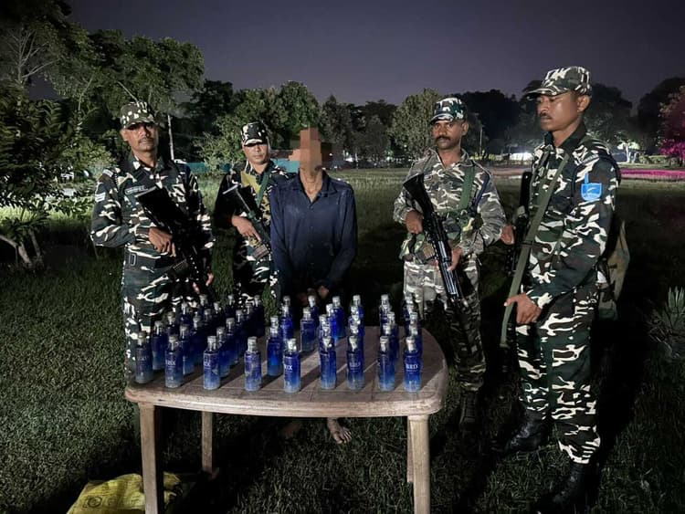 -एसएसबी जवानों ने इंडो-नेपाल सीमा पर की कार्रवाई -नेपाल से शराब की खेप लेकर भारतीय सीमा में आया था तस्कर सुपौल. एसएसबी 45वीं बटालियन भीमनगर सीमा चौकी के जवानों ने बुधवार को इंडो-नेपाल पिलर संख्या 206/4 के पास 13.5 लीटर नेपाली शराब के साथ एक तस्कर को गिरफ्तार किया. कमांडेंट गौरव सिंह ने बताया कि गुप्त सूचना मिली की इंडो-नेपाल पिलर संख्या 206/4 के पास से मादक पदार्थों की तस्करी होने वाली है. इसके बाद टीम का गठन कर जवानों को चिन्ह्त जगह पर भेजा गया. वहां पहुंचने के कुछ देर बाद जवानों ने देखा कि एक व्यक्ति कुछ सामान लेकर नेपाल से भारतीय सीमा में प्रवेश कर रहा है. भारतीय सीमा में प्रवेश करते ही जवानों ने उसे पकड़ कर तलाशी ली तो 13.5 लीटर नेपाली शराब बरामद हुआ. जवानों ने मौके से ही तस्कर भीमनगर निवासी निक्कू कुमार साह को गिरफ्तार कर लिया. कमांडेंट ने बताया कि जब्त शराब और गिरफ्तार तस्कर को भीमनगर पुलिस को सौंप दिया गया है.