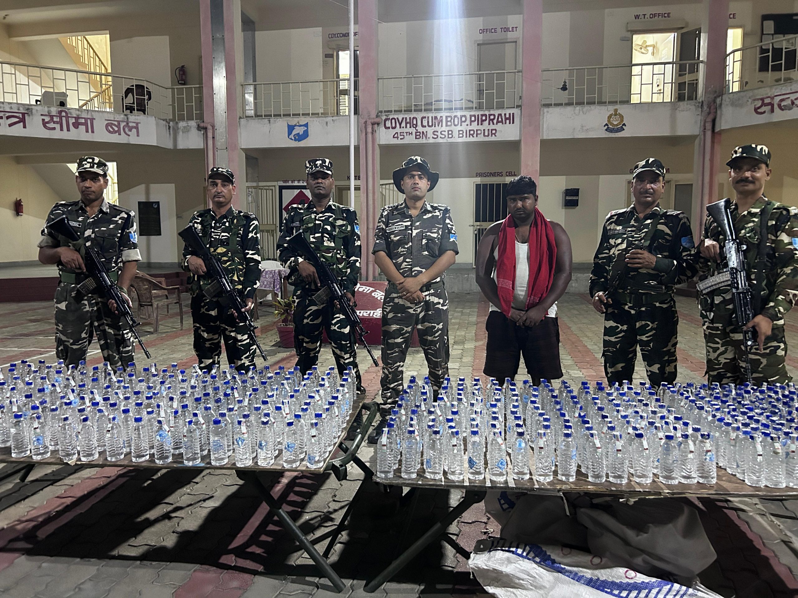 वीरपुर. एसएसबी 45वीं बटालियन पिपराही बीओपी के जवानों ने शनिवार की देर शाम नाका ड्यूटी के दौरान भारत-नेपाल अंतरराष्ट्रीय बॉर्डर पर तस्करी के नेपाल निर्मित 480 बोतल शराब के साथ एक शराब तस्कर को पकड़ा. जिसे कागजी कार्रवाई के बाद रतनपुर पुलिस को सौंप दिया गया. पकड़े गए शराब तस्कर की पहचान रतनपुर थाना क्षेत्र के पिपराही वार्ड नंबर 01 निवासी 29 वर्षीय राम रतन राय के रूप में की गई है. जानकारी देते हुए एसएसबी 45वीं बटालियन के कमांडेंट गौरव सिंह ने बताया कि पिपराही बीओपी के क्षेत्र में पूर्वी कोशी तटबंध के 10.90 किमी स्पर के समीप नाका ड्यूटी के दौरान जवानों ने देखा कि एक व्यक्ति कुछ सामान के साथ नदी के रास्ते नेपाल से भारत प्रभाग में प्रवेश करने की कोशिश कर रहा है. तभी इस क्रम में जवानों ने फुर्ती के साथ उक्त व्यक्ति को रोक लिया. जांच के दौरान पता चला कि व्यक्ति के पास बरामद बोरे में नेपाली शराब है, जिसकी कुल मात्रा 144 लीटर यानि 480 बोतल थी. जिसे कागजी कार्यवाही करने के बाद तस्कर के साथ जब्त शराब को रतनपुरा पुलिस सौंप दिया गया. उक्त कार्यवाही के दौरान एसएसबी के सहायक उप निरीक्षक चमन सिंह व अन्य जवान शामिल थे.