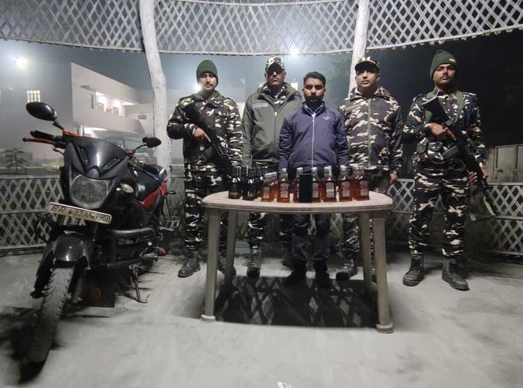 सुपौल. एसएसबी 45वीं बटालियन के जवानों ने पेट्रोलिंग ड्यूटी के दौरान सीमा चौकी कुनौली ने इंडो नेपाल बार्डर पर 49 बोतल नेपाली शराब के साथ तस्कर व एक बाइक जब्त किया. जानकारी देते हुए एसएसबी 45 वीं बटालियन कमांडेंट गौरव सिंह ने बताया कि सीमा चौकी कुनौली के जिम्मेवारी क्षेत्र में पेट्रोलिंग ड्यूटी के दौरान जवानों ने देखा कि नेपाल से अनाधिकृत मार्ग द्वारा एक व्यक्ति बाइक पर कुछ सामान के साथ भारत प्रभाग की तरफ़ आ रहा है. जिसे पेट्रोलिंग पार्टी में तैनात एसएसबी जवानों द्वारा रोका गया. इसके बाद बाइक पर रखे बोरे की जांच की गयी तो 49 बोतल शराब बरामद किया गया. शराब तस्कर की पहचान राजेश कुमार साह कमलपुर कुनौली के रूप में की गयी. कागजी कार्यवाही करने के बाद जब्त शराब, बाइक व गिरफ्तार तस्कर कुनौली थाना को सुपुर्द किया गया. उक्त कार्यवाही के दौरान एसएसबी के मुख्य आरक्षी विकास कुमार एवं अन्य जवान उपस्थित थे.