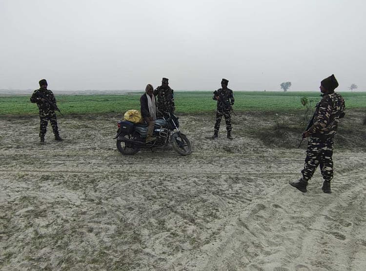कुनौली. एसएसबी 45 वीं बटालियन के जवानों ने गुरुवार को पेट्रोलिंग ड्यूटी के दौरान सीमा चौकी कुनौली इंडो नेपाल बार्डर पर 95 बोतल नेपाली शराब के साथ एक तस्कर को बाइक सहित गिरफ्तार किया. जानकारी देते हुए एसएसबी 45 वीं बटालियन कमांडेंट गौरव सिंह ने बताया कि सीमा चौकी कुनौली के जिम्मेवारी क्षेत्र में सीमा स्तंभ संख्या 221/1 के पास पेट्रोलिंग ड्यूटी के दौरान जवानों ने देखा कि नेपाल से अनाधिकृत मार्ग से एक व्यक्ति बाइक पर कुछ सामान के साथ भारत प्रभाग की तरफ आ रहा है. जिसे पेट्रोलिंग पार्टी के जवानों द्वारा रोका गया. बाइक पर रखे बोरे की जब जांच की गयी तो उसमें 95 बोतल नेपाली शराब पाया गया. गिरफ्तार तस्कर खेलन मेहता बथनाहा कुनौली का रहने वाला है. कागजी कार्यवाही के बाद जब्त शराब, बाइक व तस्कर को कुनौली थाना को सुपुर्द किया गया. उक्त कार्यवाही के दौरान एसएसबी के मुख्य आरक्षी कमलेश्वर साहू एवं अन्य जवान उपस्थित थे.