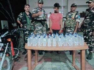 एसएसबी 45वीं बटालियन सीमा चौकी नियोर के जवानों ने इंडो-नेपाल सीमा पर 18 लीटर नेपाली शराब के साथ एक तस्कर को गिरफ्तार किया.