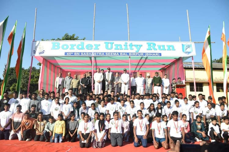 वीरपुर. 45वीं वाहिनी सशस्त्र सीमा बल (एसएसबी), वीरपुर द्वारा शनिवार को सीमावर्ती क्षेत्र में “05 किलोमीटर बॉर्डर यूनिटी रन” का सफल एवं भव्य आयोजन किया गया. कार्यक्रम का शुभारंभ 45वीं वाहिनी के कमांडेंट गौरव सिंह द्वारा भीमनगर पेट्रोल पंप से हरी झंडी दिखाकर किया गया. यह दौड़ निर्धारित मार्ग से होती हुई प्लस टू उच्चतर माध्यमिक विद्यालय के खेल मैदान में संपन्न हुई. इस अवसर पर वाहिनी मुख्यालय परिसर में वृहद पौधारोपण कार्यक्रम का भी आयोजन किया गया. कार्यक्रम में लगभग 600 प्रतिभागियों ने उत्साहपूर्वक भाग लिया, जिनमें 50 महिलाएं, जीवंत गांव के 250 प्रतिभागी, बड़ी संख्या में एसएसबी कार्मिक एवं स्थानीय युवा शामिल थे. दौड़ के समापन के पश्चात विद्यालय परिसर में विजेताओं को सम्मानित किया गया. महिला व पुरुष वर्ग के विजेता बॉर्डर यूनिटी रन में महिला वर्ग में रानी कुमारी प्रथम स्थान, सैका द्वितीय व काजल कुमारी तृतीय स्थान पर रही. वहीं पुरुष वर्ग में तारिक अनवर प्रथम, नसीम अख्तर द्वितीय व बहादुज्जमा तृतीय स्थान प्राप्त किया. विजेताओं को मुख्य अतिथि विधायक नीरज कुमार सिंह ‘बबलू’ द्वारा पदक एवं प्रमाण-पत्र प्रदान कर सम्मानित किया गया. कार्यक्रम की शोभा बढ़ाते हुए एसएन विद्यालय एवं कैम्ब्रिज स्कूल के विद्यार्थियों द्वारा सांस्कृतिक एवं सह-पाठ्यक्रम गतिविधियों की आकर्षक प्रस्तुतियां दी गईं, जिसने उपस्थित दर्शकों का मन मोह लिया. इस अवसर पर कमांडेंट जनार्दन मिश्रा (क्षेत्रक मुख्यालय पूर्णिया), जगदीश कुमार शर्मा (द्वितीय कमान अधिकारी, 45वीं वाहिनी), उप कमांडेंट प्रवीण कौशिक, उप कमांडेंट सुमन सौरभ, एसपीडीओ वीरपुर, कैप्टन दिलीप कुमार यादव, मिथिलेश कुमार झा, बीके रॉय सहित बड़ी संख्या में लोग मौजूद थे.