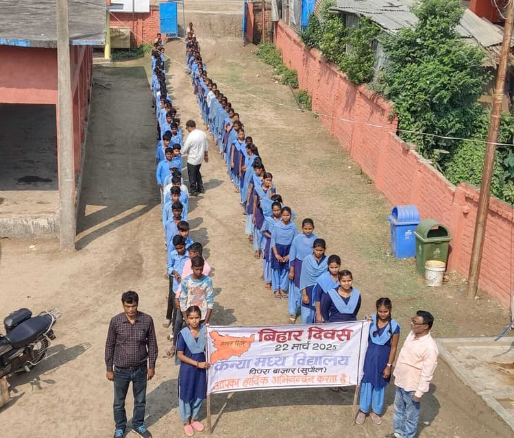 पिपरा. बिहार दिवस व सुपौल जिला स्थापना दिवस के अवसर पर शनिवार को सरकारी विद्यालय के छात्र-छात्राओं द्वारा प्रभात फेरी निकाली गई. इस अवसर पर कन्या मध्य विद्यालय पिपरा के छात्र-छात्राओं के द्वारा प्रभातफेरी निकाली गई, जो पिपरा बाजार के विभिन्न मार्गो से गुजरते हुए पुनः विद्यालय पहुंची. प्रभातफेरी में छात्र-छात्राओं के अलावा विद्यालय के शिक्षक रमेश कुमार, चंदन कुमार, राजीव कुमार, सरिता कुमारी, निधि कुमारी, लक्ष्मी कुमारी आदि शामिल थे.