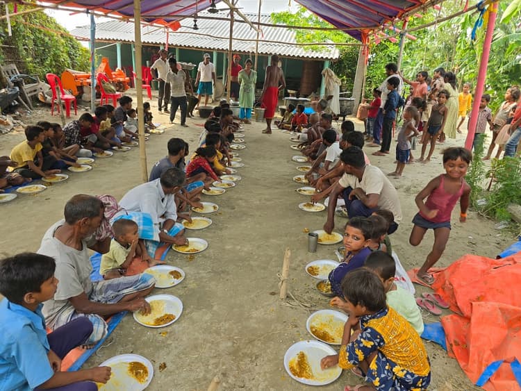 बाढ़ पीड़ितों के बीच राहत सामग्री का हो रहा वितरण