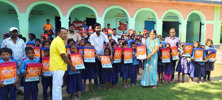 छातापुर. प्रावि प्रखंड कॉलोनी छातापुर व प्रावि राम भूमिहार टोला डहरिया में गुरुवार को बच्चों के बीच टेबल बैग का वितरण किया गया. प्रखंड 20 सूत्री अध्यक्ष पवन कुमार हजारी ने अन्य सहयोगियों के साथ मिलकर बच्चों के बैग प्रदान कर उसके उज्जवल भविष्य की शुभकामनाएं दी. बैग पाकर गदगद बच्चों के चेहरे पर मुस्कान तैर रहे थे. प्रखंड कॉलोनी विद्यालय में वितरण के दौरान मौके पर एचएम गुंजन देवी, सहायक शिक्षक हीरालाल पासवान, पीयूष कुमार पिंकू, उषा कुमारी, शारदा कुमारी, शिक्षा सेवक संजय ऋषिदेव भी थे. वहीं राम भूमिहार टोला डहरिया में एचएम बबिता कुमारी, सहायक शिक्षक मनोज कुमार, बदीउज्जमा, गौरव कुमार, कविता कुमारी, कविता सिंह की मौजूदगी देखी गई. 20 सूत्री अध्यक्ष श्री हजारी ने बताया कि केंद्र की मोदी सरकार शिक्षा को बढ़ावा देने के लिए सभी स्तरों पर प्रयास कर रही है. स्थानीय विधायक सह बिहार सरकार के मंत्री नीरज कुमार सिंह के प्रयास से ओएनजीसी के द्वारा उपलब्ध कराये गये टेबल बैग का वितरण सभी प्राथमिक विद्यालयों में कराया जा रहा है. यह टेबल बैग अति आधुनिक है और विद्यालय या घर दोनों जगह उपयोगी है. पढ़ने या लिखने के दौरान बच्चों को रीढ़ की हड्डी की समस्या से बचने में मदद मिलेगी. वितरण के मौके पर प्रखंड मीडिया प्रभारी रामटहल भगत, भोगानंद राजा आदि भी थे.