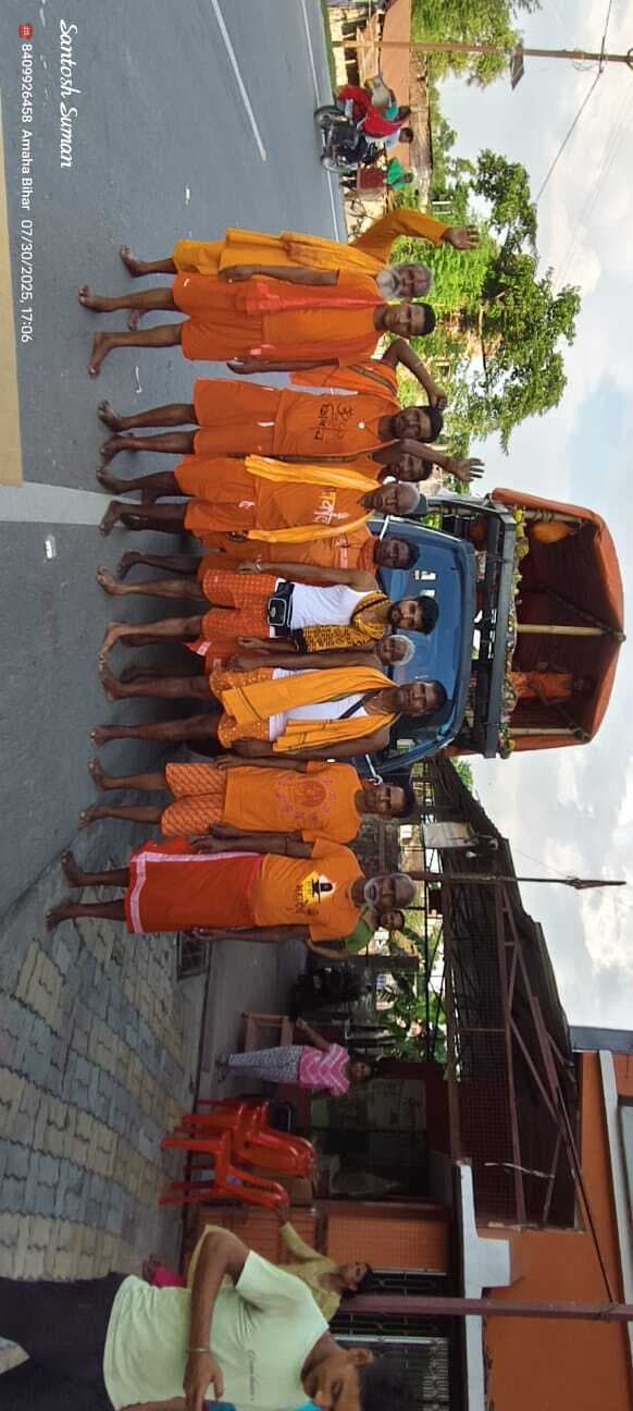 पिपरा. परंपरागत आस्था और श्रद्धा के प्रतीक सावन माह में इस वर्ष भी बाबा बुलंदी स्थान कांवरिया संघ, तेतराही (अमहा पिपरा) के तत्वावधान में 51 कांवरियों का श्रद्धालु जत्था देवघर के लिए रवाना हुआ. कांवड़ यात्रा का शुभारंभ गुरुवार को बाबा बुलंदी स्थान परिसर से हुआ. जत्था को संघ के व्यवस्थापक प्रो पंकज एस नारायण, अध्यक्ष (फर्नीचर बाजार) एवं काजल नारायण, समाजसेविका एवं अध्यक्ष (जागरण क्लब) द्वारा झंडा दिखाकर रवाना किया गया. इस अवसर पर धार्मिक जयघोष और भक्ति संगीत के साथ श्रद्धालु भावविभोर नजर आए. प्रो पंकज एस नारायण ने बताया कि यह कांवड़ यात्रा विगत पांच वर्षों से लगातार आयोजित की जा रही है, जिसमें समाज के श्रद्धालुओं को संगठित कर धार्मिक वातावरण में देवघर व बासुकीनाथ की पवित्र यात्रा कराई जाती है. उन्होंने बताया कि सुल्तानगंज से जल भरकर कांवरियों का यह जत्था देवघर और फिर बासुकीनाथ धाम तक की यात्रा करेगा, जिसकी सभी व्यवस्थाएं फर्नीचर बाजार के सौजन्य से की गई हैं. इस धार्मिक आयोजन के दौरान स्थानीय ग्रामीणों, सामाजिक कार्यकर्ताओं एवं प्रबुद्ध नागरिकों की भी उल्लेखनीय भागीदारी रही, जिन्होंने कांवरियों को मंगलमय यात्रा की शुभकामनाएं दी.