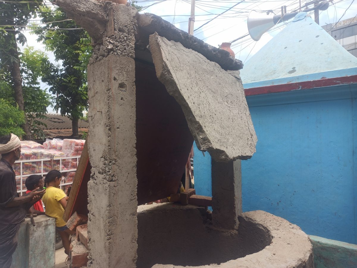 निर्माणाधीन पुराने कुएं की छत ढलाई गिरी, बाल-बाल बचे लोग