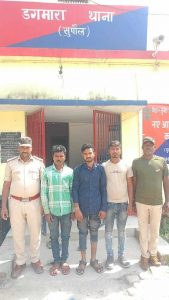 कुनौली. डगमारा पुलिस ने मद्य निषेध के तहत तीन अप्राथमिक अभियुक्त को गिरफ्तार किया है. थानाध्यक्ष रामानुज सिंह ने बताया कि अप्राथमिक अभियुक्तों की पहचान संजय कुमार, परमानंद मंडल, आज़ाद कुमार भपटियाही के रूप में कई गई. गिरफ्तार अभियुक्त के विरुद्ध कांड संख्या-18/25, 19/25, 20/25 दर्ज कर गिरफ्तार न्यायिक हिरासत में भेज दिया गया.