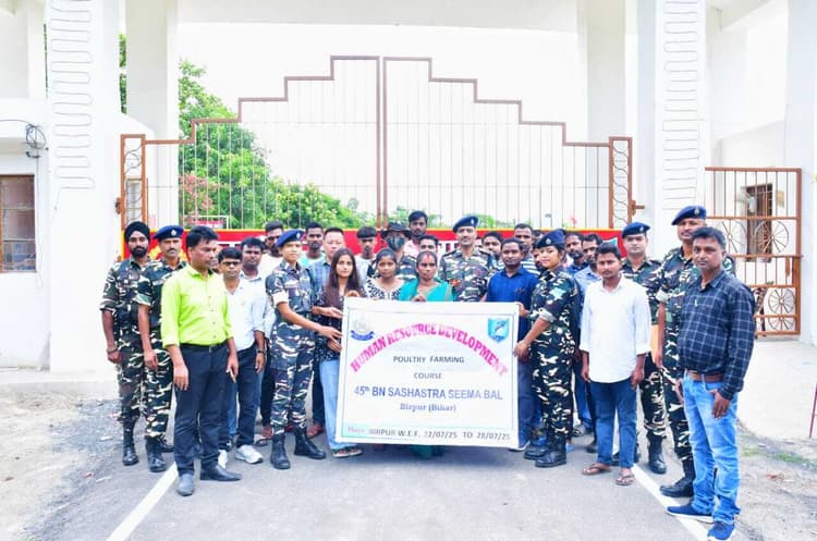वीरपुर. एसएसबी 45 वीं बटालियन मुख्यालय वीरपुर में सीमावर्ती क्षेत्र के लोगों को रोजगार परक बनाने व आर्थिक स्थिति को मजबूत करने के लिये सिविक एक्शन प्रोग्राम के तहत पोल्ट्री फार्मिंग कोर्स का आयोजन किया गया है. यह कार्यक्रम 22 जुलाई से शुरुआत की गयी है जिसका समापन 28 जुलाई को किया जायेगा. एसएसबी 45 वीं बटालियन के कमाडेंट गौरव सिंह ने बताया कि सभी प्रतिभागियों को शनिवार को पोल्ट्री फार्म का भ्रमण कराया गया है. कार्यक्रम का उद्देश्य सीमावर्ती क्षेत्र के स्थानीय नागरिकों को रोजगारपरक प्रशिक्षण दिला कर उन्हें स्वावलंबी बनाना तथा उनकी आर्थिक स्थिति को मजबूत बनाना है. बताया कि प्रशिक्षण में सीमावर्ती क्षेत्र के स्थानीय नागरिक एवं महिलाएं भी सक्रिय रूप से भाग ले रही है. एसएसबी अपने आदर्श वाक्य सेवा सुरक्षा और बंधुत्व पर अटल रहते हुए सीमा की सुरक्षा की जिम्मेवारी के साथ साथ सीमा पर रहने वाले लोगो के बीच मित्रता भरे वातावरण में वहां के लोगो के लिए रोजगार उन्मुखी प्रशिक्षण संचालित कर उन्हें रोजगार के अवसर भी प्रदान करने के दायित्व को भी पूरा कर रही है.