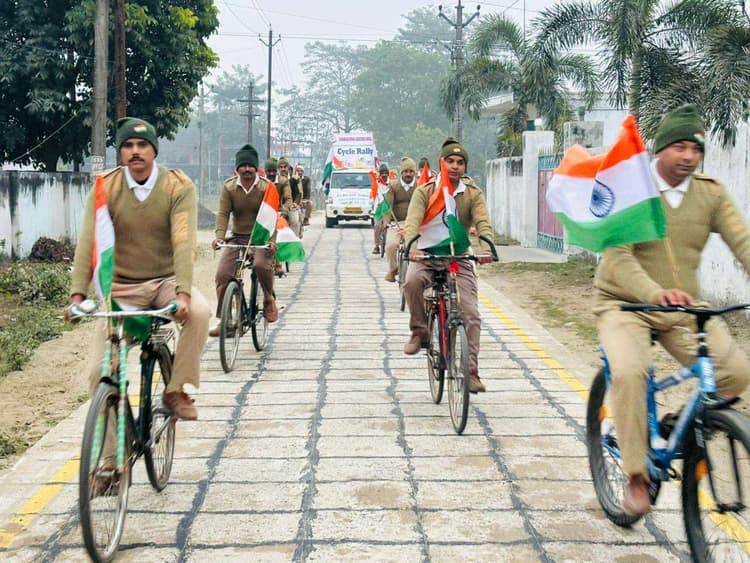 – चार सौ अधिक लोग व प्रतिभागियों ने लिया हिस्सा वीरपुर. 45वीं वाहिनी, सशस्त्र सीमा बल वीरपुर व इसकी समस्त सीमा चौकियों द्वारा मंगलवार को देशभक्ति, राष्ट्रीय एकता और नागरिक जागरूकता को सुदृढ़ करने के उद्देश्य से “वंदे मातरम् एवं तिरंगा साइकिल रैली” का आयोजन किया गया. यह साइकिल रैली भीमनगर के कार्यक्षेत्र में उप महानिरीक्षक राजेश टिक्कू, क्षेत्रक मुख्यालय पूर्णिया के मार्गदर्शन में तथा वाहिनी क्षेत्र में उप कमांडेंट प्रवीण कुमार कौशिक एवं उप कमांडेंट हरजीत राव की गरिमामयी उपस्थिति में अत्यंत उत्साह के साथ संपन्न हुई. कार्यक्रम में 45वीं वाहिनी वीरपुर के अधीनस्थ अधिकारियों एवं जवानों ने सक्रिय एवं सराहनीय सहभागिता निभाई. रैली में शामिल सभी प्रतिभागियों ने हाथों में राष्ट्रीय ध्वज (तिरंगा) लेकर “वंदे मातरम्” के गगनभेदी नारों के साथ रैली मार्ग पर अनुकरणीय जोश, समर्पण एवं अनुशासन का परिचय दिया. साइकिल रैली निकटवर्ती गांवों एवं स्थानीय क्षेत्रों से होकर गुज़री, जहां स्थानीय नागरिकों की उत्साहपूर्ण सहभागिता देखने को मिली. तिरंगे की सजीव झलक और एसएसबी कार्मिकों की प्रेरणादायी उपस्थिति ने स्थानीय समुदाय, विशेषकर युवाओं को राष्ट्रभक्ति एवं सामाजिक दायित्व के प्रति प्रेरित किया. इस आयोजन का मुख्य उद्देश्य स्थानीय जनमानस में देशप्रेम की भावना को प्रबल करना, एसएसबी एवं नागरिकों के बीच सौहार्दपूर्ण संबंधों को और अधिक सुदृढ़ करना व राष्ट्र के प्रति गौरव और जिम्मेदारी की भावना को बढ़ावा देना रहा. इस भव्य कार्यक्रम में 400 से अधिक नागरिकों एवं प्रतिभागियों ने भाग लेकर आयोजन को ऐतिहासिक सफलता प्रदान की.