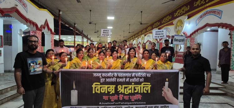 सुपौल. सुपौल की धरती पर देशभक्ति की एक अनूठी मिसाल उस वक्त देखने को मिली, जब कश्मीर के पहलगांव में हुए कायराना आतंकी हमले के खिलाफ जन आक्रोश उमड़ पड़ा. मारवाड़ी महिला समिति, मारवाड़ी युवा मंच, श्याम परिवार एवं मारवाड़ी सम्मेलन के संयुक्त तत्वावधान में सैकड़ों महिलाओं व पुरुषों ने कैंडल मार्च निकालकर शहीद पर्यटकों को अश्रुपूरित श्रद्धांजलि अर्पित की. भारत माता की जयकारों और देशभक्ति के नारों से गूंजते इस मार्च में महिलाओं के हाथों में जलती मोमबत्तियां थीं और दिलों में था मातृभूमि के प्रति अटूट प्रेम. हर चेहरा दुख से भरा था, लेकिन आतंक के खिलाफ एक बुलंद आवाज भी नजर आ रही थी. मार्च का नेतृत्व कर रहीं समिति की सचिव विद्या मोहनका ने भावुक स्वर में कहा, हमारी सरकार से मांग है कि इस कायराना हरकत का मुंहतोड़ जवाब दिया जाए. जो आतंकवादी हमारे निर्दोष नागरिकों की जान लेते हैं, उन्हें मौत से कम कोई सजा नहीं मिलनी चाहिए. अब देश चुप नहीं बैठेगा. हम मौत के बदले मौत चाहते हैं. कैंडल मार्च में शामिल महिलाओं ने एक सुर में आतंकवाद के खिलाफ सख्त कदम उठाने की मांग की और शहीदों की आत्मा की शांति के लिए मौन रखा. इस मौके पर मारवाड़ी महिला सम्मेलन की अध्यक्ष राखी अग्रवाल, मारवाड़ी युवा मंच के अंतेश अग्रवाल, कुणाल मोहनका, श्याम परिवार के अध्यक्ष दामोदर प्रसाद, पवन अग्रवाल, धीरज अग्रवाल, शरद मोहनका, रमेश मिश्र, सुमित अग्रवाल, अमित अग्रवाल, मयंक अग्रवाल, आर्यन मोहनका आदि मौजूद थे.