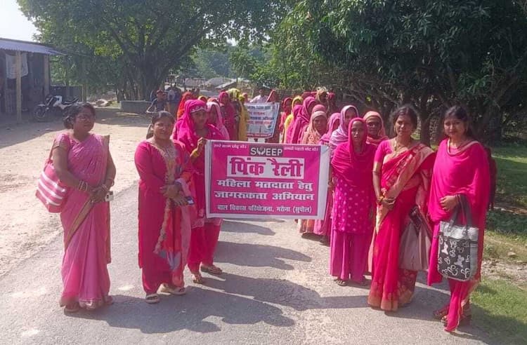 सुपौल. आगामी विधानसभा चुनाव को लेकर जिले में मतदाता जागरूकता अभियान लगातार गति पकड़ रहा है. इसी कड़ी में बाल विकास परियोजना पदाधिकारी एवं महिला पर्यवेक्षिकाओं के संयुक्त तत्वावधान में शनिवार को सिसौनी स्थित बूथ संख्या 26 (बाढ़ आश्रय स्थल) पर “पिंक रैली” का आयोजन किया गया. इस कार्यक्रम में बड़ी संख्या में स्थानीय महिला मतदाता उत्साहपूर्वक शामिल हुईं. रैली का उद्देश्य महिलाओं को मतदान के महत्व के प्रति जागरूक करना और उन्हें लोकतंत्र के इस महापर्व में अपनी सक्रिय भागीदारी सुनिश्चित करने के लिए प्रेरित करना था. रैली के दौरान महिला पर्यवेक्षिकाओं ने मतदाता जागरूकता से संबंधित नारे लगाए और घर-घर जाकर महिलाओं से मतदान दिवस पर मतदान केंद्र तक अवश्य पहुंचने की अपील की. कार्यक्रम में उपस्थित बाल विकास परियोजना पदाधिकारी ने कहा कि एक सशक्त लोकतंत्र के निर्माण में महिलाओं की भागीदारी अत्यंत आवश्यक है. उन्होंने बताया कि “लो वीटीआर ” वाले क्षेत्रों में विशेष रूप से ऐसे कार्यक्रमों का आयोजन किया जा रहा है ताकि मतदान प्रतिशत में वृद्धि हो सके. रैली के उपरांत एक शपथ ग्रहण समारोह भी आयोजित किया गया, जिसमें सभी उपस्थित महिला मतदाताओं ने आगामी विधानसभा चुनाव में शत-प्रतिशत मतदान करने की शपथ ली. इस मौके पर महिलाओं में खासा उत्साह देखने को मिला. स्थानीय प्रशासन द्वारा चलाए जा रहे “स्वीप” कार्यक्रम के तहत यह आयोजन सफल रहा, जिसने महिला मतदाताओं में मतदान के प्रति नई ऊर्जा और जागरूकता का संचार किया. उपस्थित अधिकारियों ने उम्मीद जताई कि इस बार सिसौनी क्षेत्र में मतदान प्रतिशत में उल्लेखनीय बढ़ोतरी होगी.
