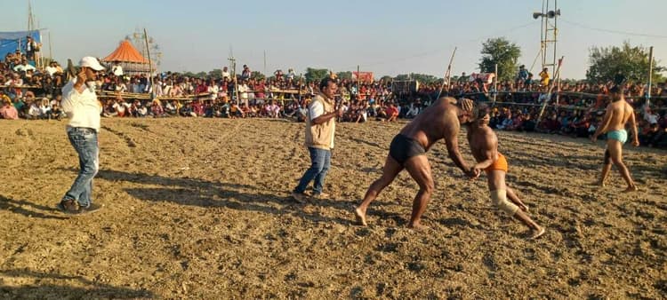 सरायगढ़. प्रखंड क्षेत्र के पुरानी भपटियाही में 09 से 22 नवंबर तक चलने वाले कार्तिक पूर्णिमा मेला में सोमवार से कुश्ती प्रतियोगिता का आयोजन किया जा रहा है. कुश्ती प्रतियोगिता में बुधवार को अयोध्या के निर्दोष पहलवान ने बनारस के काला चीता पहलवान को काफी मशक्कत के बाद पटकनी दी. कुश्ती प्रतियोगिता में भपटियाही पंचायत के मुखिया विजय कुमार यादव, पूर्व मुखिया सुनीता देवी सहित अन्य पंचायत जनप्रतिनिधियों ने पहलवानों से हाथ मिलाकर कुश्ती को प्रारंभ कराया. कुश्ती प्रतियोगिता में जावेद गनी मशहूर पहलवान ने कई पहलवानों को पटकनी दी. जावेद गनी मशहूर पहलवान को देखने के लिए काफी भीड़ जुटी हुई थी. महिला व पुरुष पहलवानों ने लिया हिस्सा कुश्ती प्रतियोगिता में बक्सर, मधुबनी, दिल्ली, बनारस, राजस्थान, कानपुर, नेपाल सहित विभिन्न जगहों के महिला और पुरुष पहलवानों ने भाग लिया. प्रतियोगिता को देखने के लिए आसपास के इलाकों के अलावे दूर दराज से लोगों की भीड़ उमड़ पड़ी. इस रोमांचक मुकाबले में तीसरे दिन मधुबनी के ललित पहलवान ने नेपाल के छोटे पहलवान को पराजित किया. मधुबनी के संजय यादव पहलवान ने देहरादून के कालू पहलवान को पराजित किया. मुजफ्फरपुर के मनु महिला पहलवान ने हिमाचल के बंदी महिला पहलवान को पराजित किया. कुश्ती प्रतियोगिता में गोरखपुर के सुरभि महिला पहलवान, नेपाल के काला पहलवान, बक्सर के काशी दास पहलवान, जम्मू कश्मीर के मो गुलाम पहलवान, हिमाचल प्रदेश के बसंत थापा पहलवान के अलावे मशहूर जावेद गनी पहलवान ने कुश्ती प्रतियोगिता में भाग लिया. मेला आयोजन समिति के सदस्य सह भपटियाही पंचायत के मुखिया विजय कुमार यादव, प्रखंड प्रमुख विजय कुमार यादव, सरपंच विजय मंगल मंगरदैता,नवीन अड़गरिया,वार्ड सदस्य संजय मेहता, राजेश कुसीयैत सहित अन्य ने बताया की 21 नवंबर तक देश के विभिन्न राज्यों के पहलवानों द्वारा कुश्ती प्रतियोगिता का आयोजन किया जाएगा. कुश्ती प्रतियोगिता में प्रथम स्थान, द्वितीय स्थान और तृतीय स्थान पाने वाले पहलवानों को पुरस्कृत किया जाएगा. 22 नवंबर को भोजपुरी गायिका अंतरा सिंह प्रियंका अपनी टीम के साथ कार्यक्रम करेगी. मेला में सर्कस, ब्रेक डांस शौ, मीना बाजार, राम झूला सहित अन्य प्रकार का कार्यक्रम का आयोजन किया गया है. मेला में लोगों की काफी भीड़ जुटी हुई रहती है.
