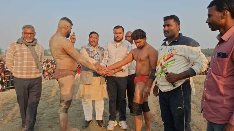 अनुमंडल क्षेत्र के गनोरा-परसौनी में विवाह पंचमी के मौके पर आयोजित मेला के चौथे दिन बुधवार को महादंगल कुश्ती देखने लोगों की भीड़ उमड़ पड़ी. मेला में विभिन्न राज्यों से आये पहलवानों के दांव-पेच देखने के लिए पहुंचे दर्शकों में उत्साह दिखा. दिल्ली, हरियाणा, यूपी, पंजाब के पहलवानों के बीच काफी कड़ा व रोमांचक मुकाबला हुआ. एक-एक पहलवान करीब 05 मिनट तक एक-दूसरे को पटखनी देने के लिए सभी दांव आजमा रहे थे. इसके अलावा जम्मू कश्मीर के पहलवान जावेद गनी व मेंटल पहलवानों के बीच कड़ा मुकाबले देखने को मिला. जावेद गनी ने मेंटल पहलवान को पटखनी दी. इसके अलावा चंड़ीगढ़ के पहलवान युवराज, हरियाणा के मुकेश, बनारस के गोलू, करूक्षेत्र के बजीर के बीच मुकाबला हुआ, जो रोमांचक रहा. मेला अध्यक्ष सह मुखिया जितेंद्र कुमार के द्वारा भी सभी पहलवानों को पुरस्कार दिया गया. जावेद गनी पहलवान व मेंटल पहलवान को मरौना दक्षिण पंचायत के पूर्व मुखिया एजाजुल हक, युवा राजद नेता विकास कुमार उर्फ राहुल कुमार यादव ने हाथ मिलाकर उनका हौसला बढ़ाया और सम्मानित किया.डिस्क्लेमर: यह प्रभात खबर समाचार पत्र की ऑटोमेटेड न्यूज फीड है. इसे प्रभात खबर डॉट कॉम की टीम ने संपादित नहीं किया है