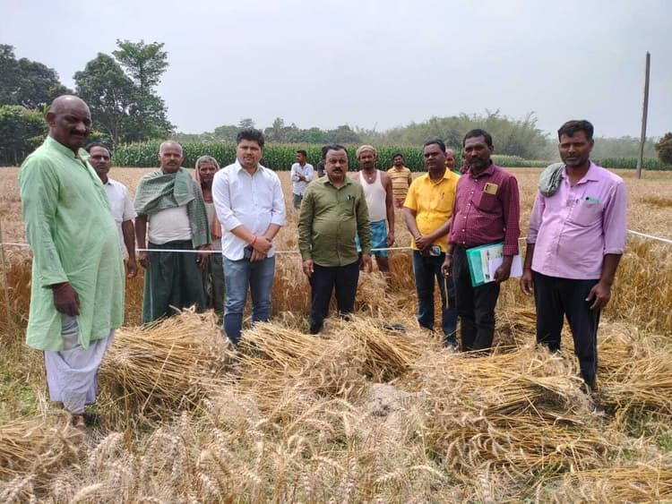 सरायगढ़. प्रखंड क्षेत्र के मुरली पंचायत में शुक्रवार को गेहूं फसल का क्रॉप कटिंग बीडीओ के अच्युतानंद, प्रभारी प्रखंड कृषि पदाधिकारी चंद्रप्रकाश मिश्रा, पूर्व मुखिया विजेंद्र प्रसाद यादव, कृषि समन्वयक वीरेंद्र कुमार की उपस्थिति में कराया गया. जिसमें गेहूं फसल के 10 मीटर लंबाई और 05 मी चौड़ाई में गेहूं फसल का कटनी का प्रयोग प्रभेद श्री राम 303 का किया गया. गेहूं फसल कटनी के बाद थ्रेसर से तैयार किया गया. जिसमें हरा दाना का वजन 29.12 किलोग्राम हुआ. फसल कटनी प्रयोग के मौके पर किसान सलाहकार राजेश कुमार, विजेंद्र गुप्ता, नरेंद्र यादव, विनोद कुमार, ब्रह्मदेव यादव, रौदी राम, शिवधर यादव, देवनंदन यादव, उपेंद्र यादव, देवेंद्र यादव, शैलेंद्र झा, राम प्रकाश यादव, पप्पू कुमार साहित्य अन्य किसान और स्थानीय ग्रामीण मौजूद थे.