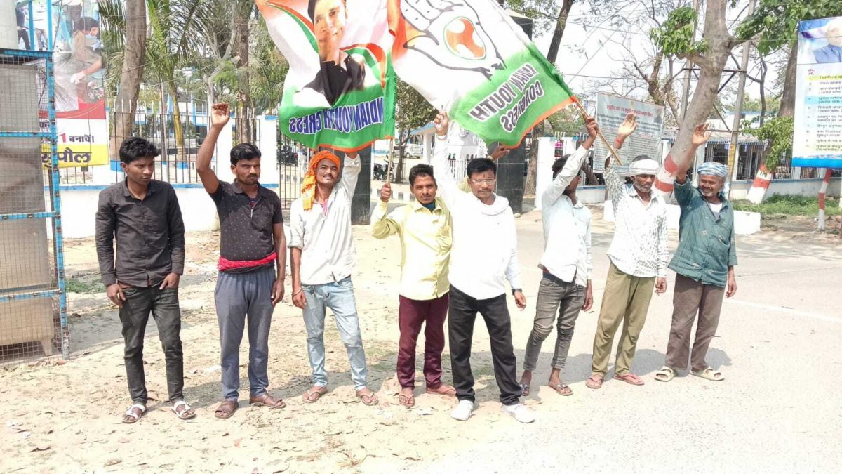 अंचल कार्यालय के कर्मचारियों के समर्थन में युवा कांग्रेस ने किया विरोध प्रदर्शन