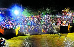 पर्यटन विभाग की ओर से शनिवार को भी गंगा आरती का आयोजन किया गया था, जिसमें भारी भीड़ जमा हुई थी.