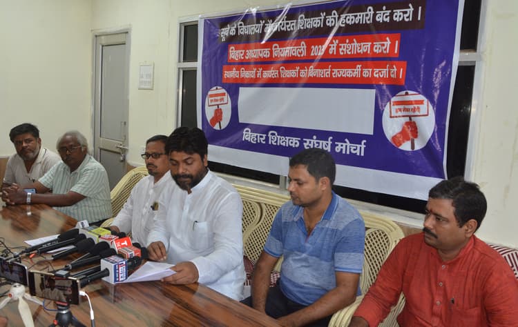 बिहार के नियोजित शिक्षक बिना शर्त राज्यकर्मी का दर्जा देने की मांग को लेकर अड़े हुए हैं. इसको लेकर बिहार शिक्षक संघर्ष मोर्चा ने पहले ही 11 जुलाई को बिहार विधानसभा के समक्ष धरना देने और 12 जुलाई सभी विधायकों को ज्ञापन सौंपने का एलान कर दिया है. धरना को लेकर रविवार को विधानसभा में भाकपा माले के उपनेता सत्यदेव राम के आवास पर मोर्चा की समीक्षा बैठक हुई, जिसकी अध्यक्षता मोर्चा के संरक्षक और पालीगंज के विधायक संदीप सौरभ ने की. बैठक में विभिन्न जिलों की भागीदारी पर चर्चा और धरना को शांतिपूर्ण सफल बनाने की रणनीति को अंतिम रूप दिया गया.