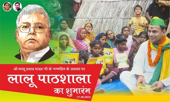 पटना. राजद सुप्रीमो लालू प्रसाद यादव का 75वां जन्मदिन सामाजिक न्याय और सद्भावना दिवस के तौर पर मनाया जाएगा. 11 जून को लालू प्रसाद के जन्मदिन पर उनके बड़े बेटे और हसनपुर के विधायक तेज प्रताप लालू पाठशाला की शुरुआत करेंगे.तेज प्रताप ने अपने आधिकारिक ट्विटर हैंडल से इस बात की जानकारी देते हुए कहा कि लालू प्रसाद के जन्मदिन पर वह लालू पाठशाला का शुभारंभ करने जा रहे हैं. उसी दिन वह पाठशाला किया का शिलान्यास भी करेंगे.