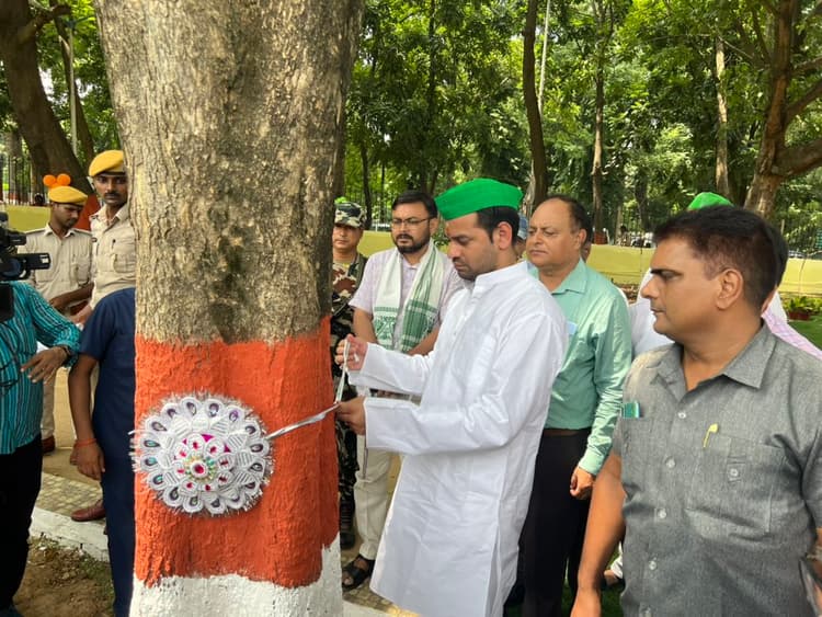 वहीं इससे पहले मंत्री तेज प्रताप यादव ने पटना के इको पार्क (राजधान वाटिका) में भी पेड़ों को राखी बांध कर रक्षा बंधन का त्योहार मनाया. ट्वीटर पर इस बात की जानकारी देते हुए तेज प्रताप ने लिखा कि रक्षा बंधन के अवसर पर राजधानी वाटिका पटना में वृक्ष को रक्षा सूत्र बांधकर, पेड़ों की रक्षा का संकल्प लिया, साथ ही इस अवसर पर पीपल का वृक्ष भी लगाया. आप सबों से अपील है कि पेड़ों की सुरक्षा और संरक्षण में अपनी सहभागिता निभाएं. अधिक से पौधारोपण करें और पर्यावरण बचाएं.