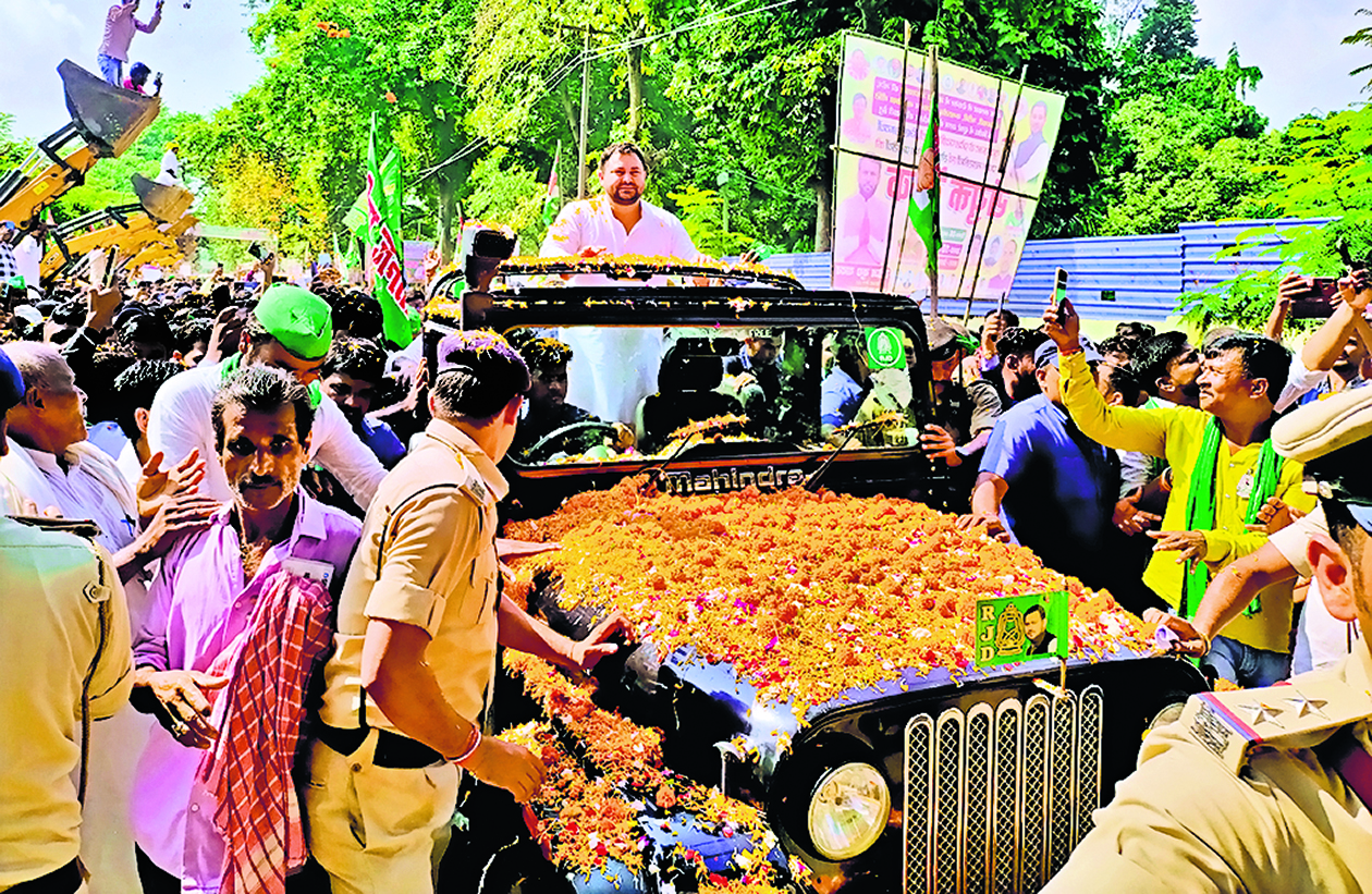 Tejashwi Yadav Photos: रास्ते में जहां एक ओर हजारों की संख्या में प्रमंडल की आंगनबाड़ी सेविका अपनी मांगों को लेकर कतारबद्ध होकर मांग कर रही थी. वहीं दूसरी तरफ दर्जनों जेसीबी में उपर चढ़कर उत्साहित युवा उनपर फूल बरसाते रहे.