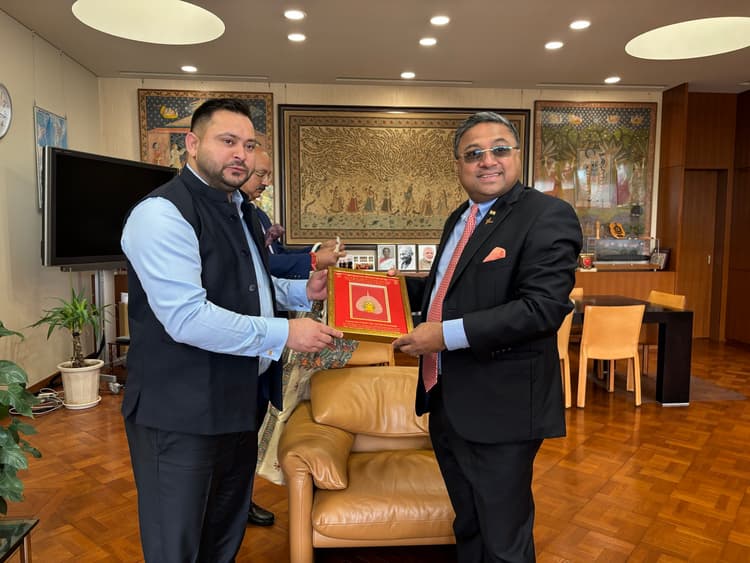 अपने जापान दौरे पर तेजस्वी यादव ने सबसे पहले जापान में भारत के राजदूत सिबी जॉर्ज से मुलाकात की. राजदूत से हुई मुलाकात के बारे में तेजस्वी ने सोशल मीडिया पर पोस्ट कर कहा कि बिहार के बौद्ध सर्किट को बढ़ावा देने के लिए मेरी जापान यात्रा पर जापान में भारत के राजदूत श्री सिबी जॉर्ज के साथ सार्थक बातचीत हुई है.