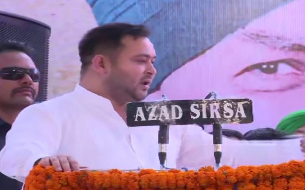 तेजस्वी यादव ने कहा कि आज हम उन किसानों को धन्यवाद देते हैं जिनके बेटे फौजी हैं क्योंकि जवानों ने देश को बचाने का काम किया है. मैं आप लोगों का धन्यवाद करने आया हूं कि किसानों ने किसान आंदोलन कर संघियों को अच्छे से सबक सिखाने का काम किया. देवी लाल के जन्मदिन पर फतेहाबाद में भारतीय राष्ट्रीय लोकदल (INLD) के द्वारा रैली का आयोजन किया गया है. इस रैली में राष्ट्रवादी कांग्रेस पार्टी (एनसीपी) के अध्यक्ष शरद पवार, बिहार के मुख्यमंत्री नीतीश कुमार, आरजेडी नेता तेजस्वी यादव और नेशनल कॉन्फ्रेंस (नेकां) के फारूक अब्दुल्ला समेत विपक्ष के कई नेताओं ने मंच साझा किया.