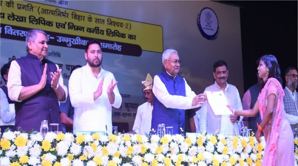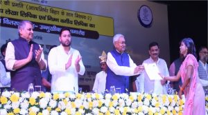 Bihar politics: श्री कृष्ण मेमोरियल हॉल में मुख्यमंत्री नीतीश कुमार ने जल संसाधन विभाग के 1006 सफल अभ्यर्थियों को नियुक्ति पत्रों का वितरण किया. इस दौरान उनके साथ तेजस्वी यादव मौजूद रहे. मौके पर नीतीश और तेजस्वी ने एक दूसरे की जमकर तारीफ की.