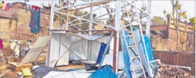 सिलाव (नालंदा). स्थानीय प्रखंड के पांकी गांव में मंगलवार की सुबह 12 लाख रुपये की लागत से निर्मित पानी टंकी सहित जलमीनार 24 घंटे के अंदर धराशायी हो गया.