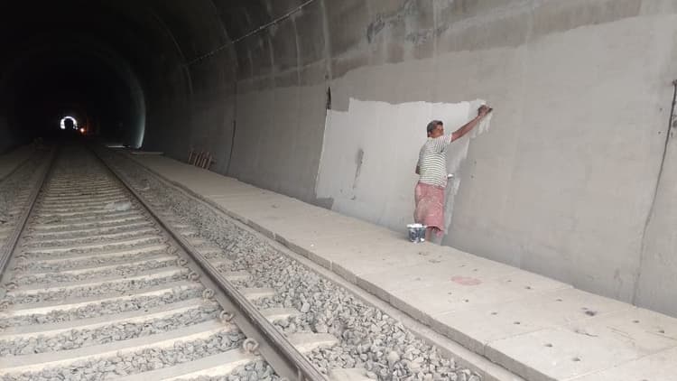 हालांकि अभी रेल सुरंग का वाल पुट्टी का कार्य किया जा रहा है. सुरंग के अंदर के तमाम हिस्सों को पुट्टी चढ़ायी जा रही है. जिसके बाद पूरे सुरंग की रंगाई की जाएगी. सुरंग की लंबाई 341 मीटर चौड़ाई 7 मीटर और ऊंचाई 6.10 मीटर है.