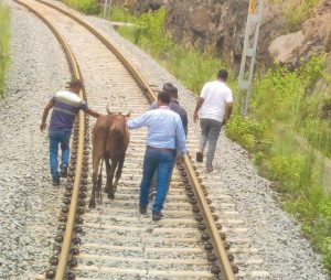 ट्रेन रोक गाय को भगाने के लिए ट्रैक पर दौड़े रेलवे कर्मचारी