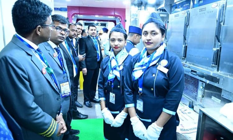 फ्लाइट्स की तर्ज पर दिखीं ट्रेन होस्टेस