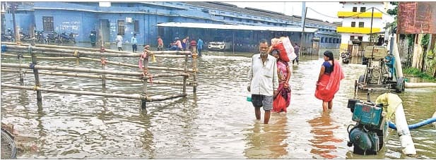 ओपीडी के रजिस्ट्रेशन काउंटर पर जलजमाव के बीच मरीज व परिजनों को पर्ची कटाना पड़ा. आपाताकालीन विभाग के डॉक्टर चैम्बर, शल्य कक्ष, दवा भंडार आदि में पानी प्रवेश कर गया.