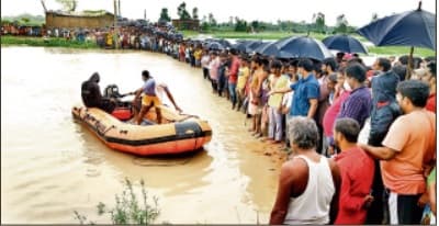 सुरसंड. विगत चार दिनों से रुक रुक कर हो रही भारी बर्षा के चलते प्रखंड के श्रीखंडी भिट्ठा गांव से होकर बहनेवाली रातो नदी का जलस्तर खतरे के निशान को पार कर दस सेंटीमीटर ऊपर बह रही है. श्रीखंडी भिट्ठा पूर्वी पंचायत के वार्ड संख्या पांच में कई लोगों के घरों में बाढ़ का पानी प्रवेश कर गया है. प्रत्येक वर्ष बाढ़ का कहर झेल चुके उक्त वार्ड के लोग जिल्लत की जिंदगी जीने को विवश है. उक्त वार्ड में जानेवाली एकमात्र पीसीसी सड़क पर भी बाढ़ के पानी में डूब गया है. जबकि भिट्ठामोड़ मुख्य चौक से रातो पुल के बीच एनएच 104 पर भी बाढ़ के पानी का दबाव बढ़ गया है. भिट्ठा ओपी व एसएसबी चेक पोस्ट के समीप जलेश्वर जनकपुर राजमार्ग पर दो फुट पानी बह रहा है. वहीं श्रीखंडी भिट्ठा पूर्वी व पश्चिमी, डाढ़ाबाड़ी, दिवारी मतौना व कोरियाही पंचायत के दर्जनों गांव के सरेह में बाढ़ का पानी फैल जाने से किसानों का सैकड़ों एकड़ में लगी धान की फसल डूब गयी है. इधर, एनएच 104 में कुम्मा डायवर्सन पर दो से तीन फुट पानी का तेज बहाव होने से छोटी गाड़ियों का परिचालन बंद हो गया है. लोग अपनी जान जोखिम में डालकर किसी तरह उक्त डायवर्सन को पार कर आवाजाही करने को विवश हैं. वहीं कुम्मा, करड़वाना, मरुकी, राधाउर, मलाही व अमाना पंचायत के दर्जनों गांव के सरेह में जमुरा व मरहा हरदी नदी का पानी फैल जाने से धान की फसल डूब गयी है. समाचार लिखे जाने तक जलस्तर की स्थिति यथावत बनी हुई है.