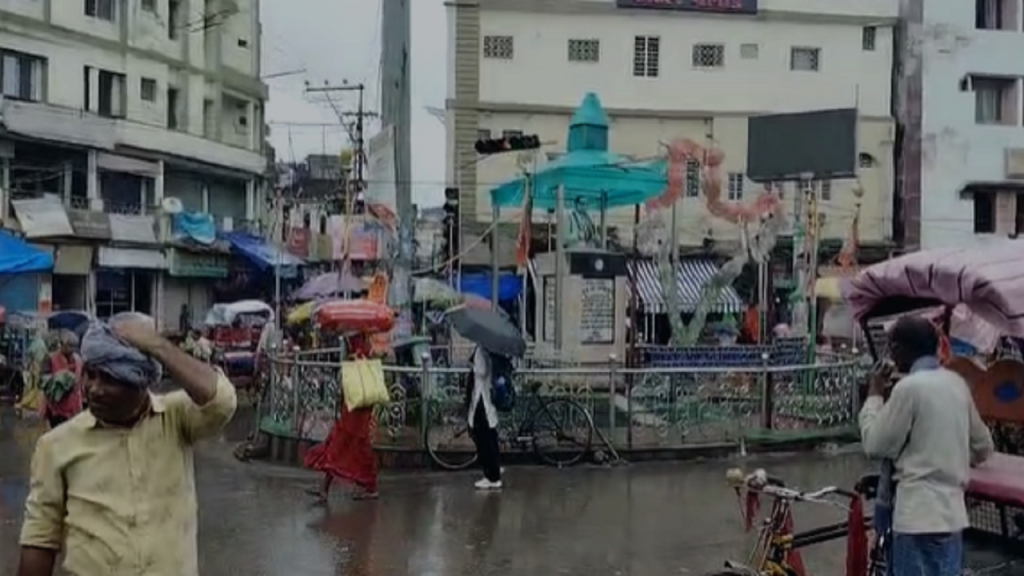 भागलपुर में बारिश के बाद लोग छाते के साथ नजर आए. राज्य में भारी बारिश की चेतावनी है. इसके साथ ही ठनके की भी चेतावनी है.