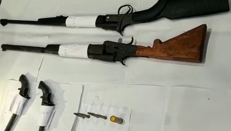 पुलिस ने बताया कि शुक्रवार देर रात हरिश्चंद्रपुर थाना क्षेत्र के बंगाल एवं बिहार की सीमा पर स्थित घोराघाट में अभियान चलाकर 2 लोगों को गिरफ्तार किया गया. दोनों संदिग्ध हालत में इधर-उधर घूम रहे थे. तलाशी के दौरान इनके पास से दो पाइपगन, दो रायफल व पांच राउंड कारतूस बरामद हुए. पुलिस ने मामले की तफ्तीश शुरू कर दी है.