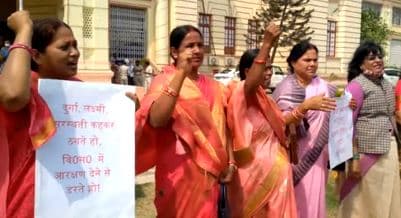 Womens Day: अंतरराष्ट्रीय महिला दिवस (International Womens Day) के दिन बिहार विधानसभा (Bihar Assembly) परिसर में महिला विधायकों (Women MLA) ने सदन में आरक्षण (Reservation) को लेकर मोर्चा खोल दिया. ना सिर्फ राजद (RJD) और कांग्रेस (Congress) बल्कि भाजपा (BJP) की महिला विधायकों ने भी ‘आधी आबादी करे पुकार-50 प्रतिशत हमारा अधिकार’ और दुर्गा लक्ष्मी, सरस्वती कहकर ठगते हो-विधान सभा में आरक्षण देने से डरते हो’ जैसे नारे लगाए.