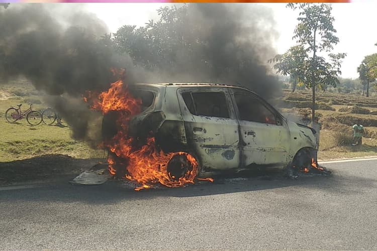 देखते ही देखते कार में लग गयी आग