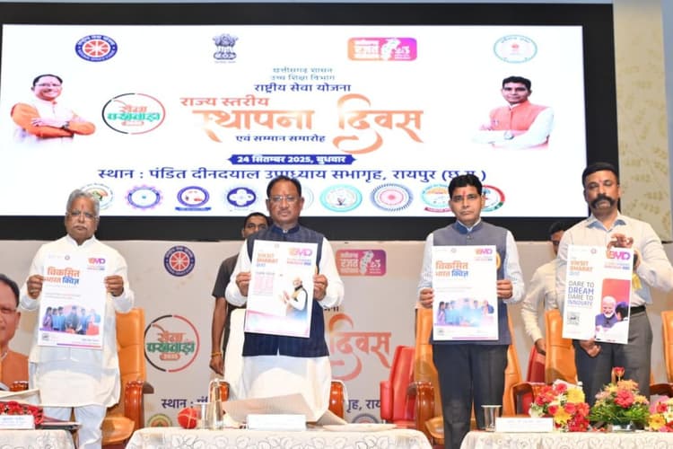 मुख्यमंत्री विष्णु देव साय ने इस अवसर पर राष्ट्रीय सेवा योजना की पत्रिका ‘समर्पण’ और विकसित भारत क्विज कार्यक्रम के पोस्टर का विमोचन किया. उन्होंने राष्ट्रीय सेवा योजना अंतर्गत उत्कृष्ट कार्य कर रही संस्थाओं, अधिकारियों और स्वयंसेवकों को सम्मानित भी किया. इस अवसर पर सीएसआईडीसी के अध्यक्ष श्री राजीव अग्रवाल, सचिव उच्च शिक्षा डॉ. एस. भारतीदासन, आयुक्त उच्च शिक्षा संतोष कुमार देवांगन, एनएसएस उप कार्यक्रम सलाहकार डॉ. अशोक कुमार श्रोती, राज्य एनएसएस अधिकारी डॉ. नीता बाजपेयी, सभी जिलों के एनएसएस कार्यक्रम समन्वयक और प्रदेशभर से बड़ी संख्या में आए स्वयंसेवक उपस्थित थे.