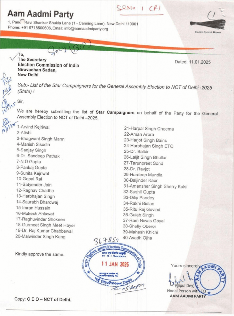 AAP ने जारी की स्टार प्रचारकों की सूची, कई बड़े चेहरों को मिली जगह