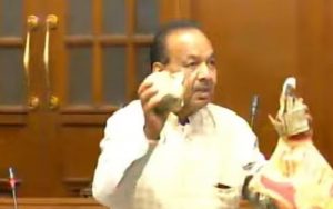 दिल्ली में आज लगातार तीसरे दिन भी हंगामा जारी रहा. आप विधायक मोहिंदर गोयल ने विधानसभा में नोटो की गड्डी लहराई. उनका यह आरोप है कि उन्हें रिश्वत में यह गड्डी देने की कोशिश की गयी है. उनका कहना है कि अंबेडकर अस्पताल में भर्ती को लेकर उन्हें यह रिश्वत दी गयी है.