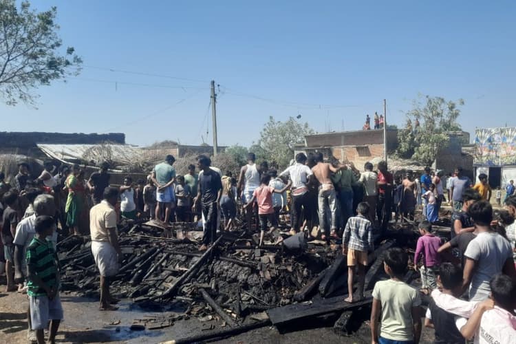 साहिबगंज के राधानगर में खाना बनाने के क्रम में लगी भीषण आग, 5 घर जलकर राख