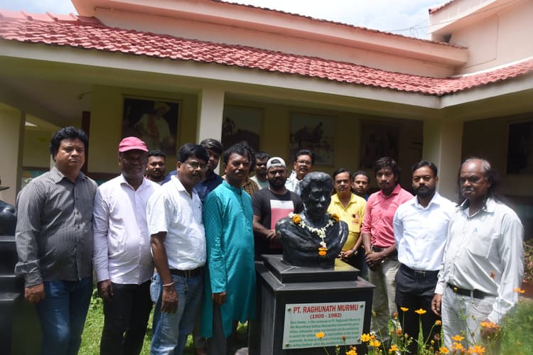 गुरू गोमके पंडित रघुनाथ मुर्मू की तसवीर पर माल्यार्पण किय