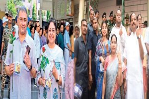 जमशेदपुर : शनिवार को लोकतंत्र के रंग में पूरी तरह डूबा नजर आया. मतदान केंद्रों पर सुबह से लंबी-लंबी कतारें लगनी शुरू हो गयी थीं. इस महापर्व में बुजुर्ग, जवान, युवा और खासकर महिलाओं में काफी उत्साह देखने को मिला. मतदान की समाप्ति के बाद कैलकुलेशन का दौर भी शुरू हो गया, लोग एक-दूसरे को बधाइयां भी देने लगे.