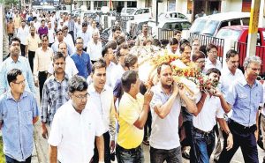 महात्मा गांधी मार्ग के समीप ब्लेयर अपार्टमेंट के फ्लैट नंबर-1बी स्थित आवास पर सैकड़ों लोगों ने श्रद्धांजलि दी. हाइकोर्ट के जस्टिस एचसी मिश्रा, जस्टिस अपरेश कुमार सिंह, जस्टिस आनंद सेन, सांसद महेश पोद्दार, पूर्व सांसद अजय मारू ने आवास पर पहुंच कर शोक संवेदना प्रकट किया. अधिवक्ता राजीव रंजन मिश्रा, सृजित चाैधरी सहित सिविल कोर्ट व हाइकोर्ट के अधिवक्ता पहुंचे थे. चेंबर के पदाधिकारी, बिजनेसमैन, समाज के लोग भी बड़ी संख्या में संवेदना प्रकट करने पहुंचे हुए थे. दिन के लगभग ढाई बजे अंतिम यात्रा शुरू हुई. हरमू मुक्तिधाम में उनका अंतिम संस्कार किया गया. मुक्तिधाम में हाइकोर्ट के जस्टिस एचसी मिश्रा, जस्टिस अनंत बिजय सिंह, प्रोटोकॉल अॉफिसर मिथिलेश कुमार, मुुख्यमंत्री के प्रधान सचिव संजय कुमार, महाधिवक्ता अजीत कुमार, स्टेट बार काउंसिल के अध्यक्ष राजीव रंजन, विधि सचिव प्रवास कुमार सिंह, एडवोकेट्स एसोसिएशन झारखंड हाइकोर्ट के अध्यक्ष वरीय अधिवक्ता एके कश्यप, महासचिव हेमंत कुमार सिकरवार, पूर्व महाधिवक्ता अनिल कुमार सिन्हा, वरीय अधिवक्ता पीसी त्रिपाठी सहित बड़ी संख्या में अधिवक्ता, व्यवसायी व गणमान्य लोग उपस्थित थे.