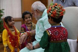 नरेंद मोदी को बच्चों ने बांधी राखी